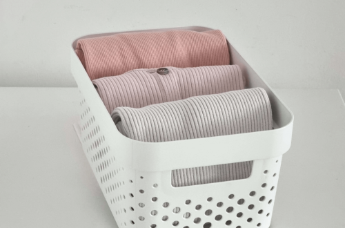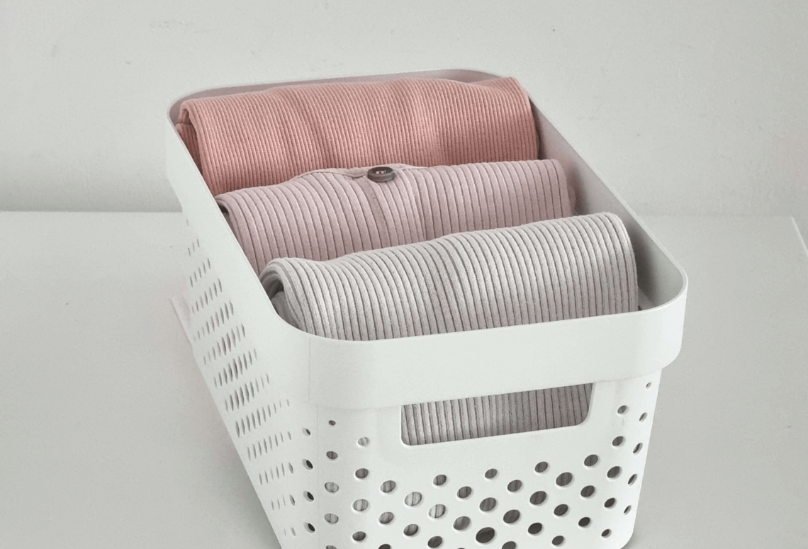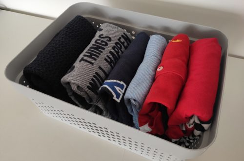 Slaganje odjeće uspravno u ladice ili organizatore – poznatije kao KonMari metoda® slaganja – pomoglo mi je da ladice u našem domu budu organizirane i ne natrpane, kako bi uvijek mogli pronaći potrebne odjevne predmete, a ne da konstantno pretražujemo hrpe odjevnih komada koje su u ladicu stavljene bez ikakvog reda. Marie Kondo preporučuje da složimo što je moguće više odjevnih predmeta, a upravo je mala dječja odjeća i ona za bebe idealna za ovu metodu. Bez obzira na to koji odjevni predmet slažemo, cilj je dobiti oblik malog pravokutnika tako da može samostalno stajati, a ne se urušavati. Međutim, nije sva odjeća pogodna za okomito slaganje. Ukoliko to ne možete…