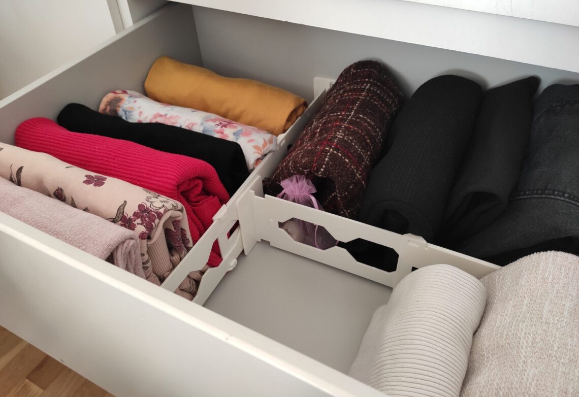 Slaganje odjeće uspravno u ladice ili organizatore – poznatije kao KonMari metoda® slaganja – pomoglo mi je da ladice u našem domu budu organizirane i ne natrpane, kako bi uvijek mogli pronaći potrebne odjevne predmete, a ne da konstantno pretražujemo hrpe odjevnih komada koje su u ladicu stavljene bez ikakvog reda. Marie Kondo preporučuje da složimo što je moguće više odjevnih predmeta, a upravo je mala dječja odjeća i ona za bebe idealna za ovu metodu. Bez obzira na to koji odjevni predmet slažemo, cilj je dobiti oblik malog pravokutnika tako da može samostalno stajati, a ne se urušavati. Međutim, nije sva odjeća pogodna za okomito slaganje. Ukoliko to ne možete…